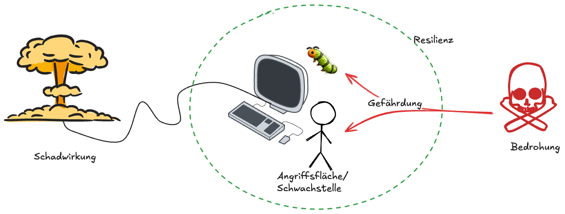 ⚠️ Werden diese Bedrohungen aktiv, wird daraus eine Gefährdung. Damit sind also konkrete Cyberangriffe gemeint.