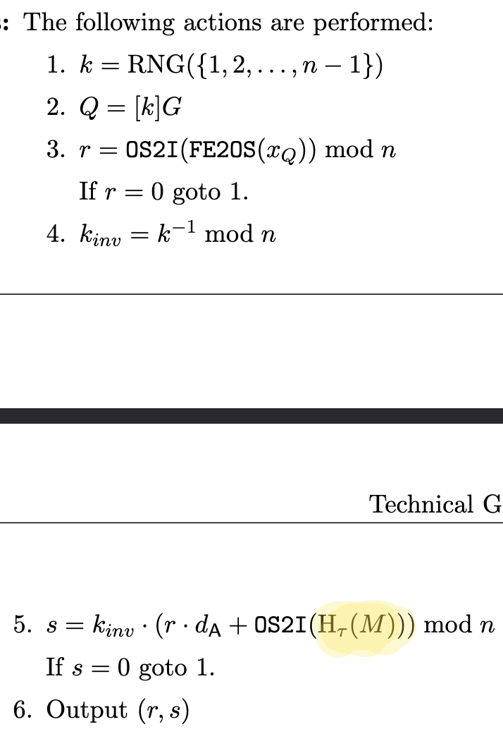 Zu guter Letzt fehlt also nur noch “SHA-384.” Schaut man sich den Algorithmus zum Erstellen der Signatur genauer an, so fällt auf, dass die Nachricht $M$ “gehasht” wird: