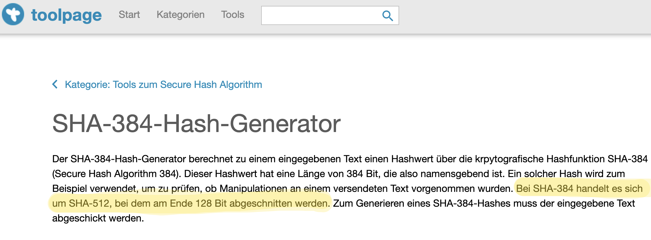 Eine Hash-Funktion weist jeder Nachricht einen Wert mit fixer Länge zu. An sich nicht kompliziert. Ich definiere z.B. $H(M)=42$. Jede Nachricht bekommt den Wert $42$. Um $42$ binär darzustellen, brauche ich 6 Bit ($101010$). Fertig ist meine Hash-Funktion, und ich taufe sie “SHANK-6” 😁. Offensichtlich gibt es gute und schlechte Hash-Funktionen. Gute Hash-Funktionen sind “kollisionsresistent”; bedeutet also jede Nachricht bekommt im besten Fall einen anderen Wert. Da “SHANK-6” jeder Nachricht denselben Wert gibt, ist diese Hash-Funktion also mit die schlechteste, die man nutzen kann 😅. “SHA-384” hingegen ist eine gute Hash-Funktion.